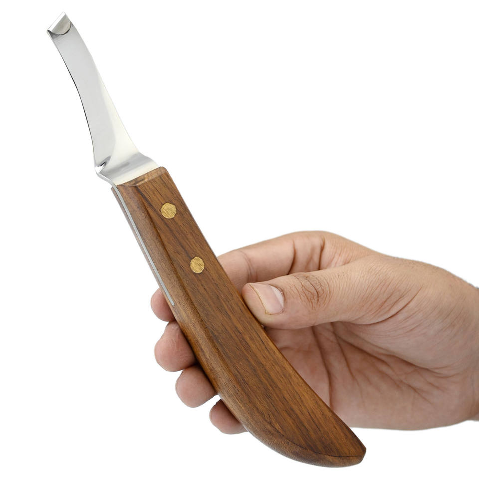 ฟังก์ชัน:มีดกีบวงยาวที่มีด้ามจับไม้สำหรับการดูแลกีบ