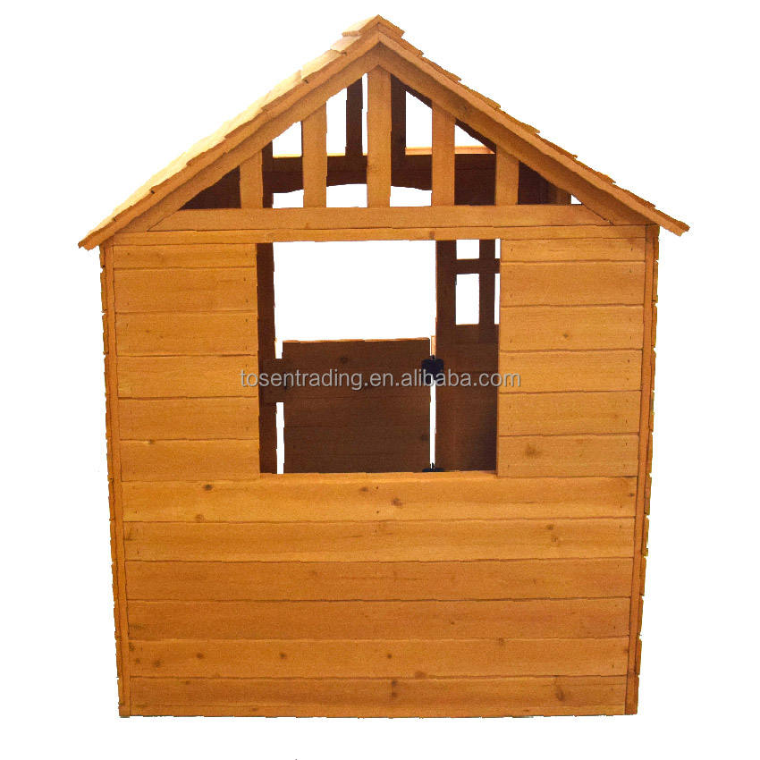 บ้านไม้เด็กเล่นสำหรับเด็กวัยหัดเดิน บ้านเด็กเล่นไม้กลางแจ้งพร้อมกระถางดอกไม้ ขายส่งบ้านเด็กเล่น