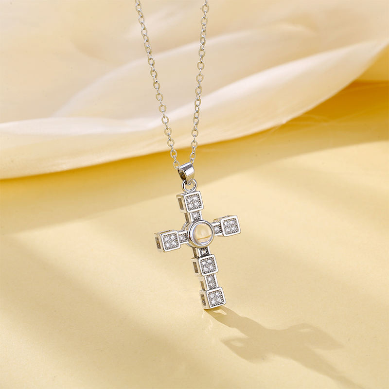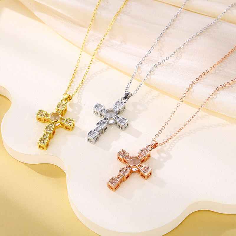 สร้อยคอจี้ฉายภาพ ชุบทอง สแตนเลสสตีล สำหรับผู้หญิง รับสั่งทำรูปภาพ จี้รูปไม้กางเขนประดับเพชรเต็มตัว สร้อยคอจี้ฉายภาพ