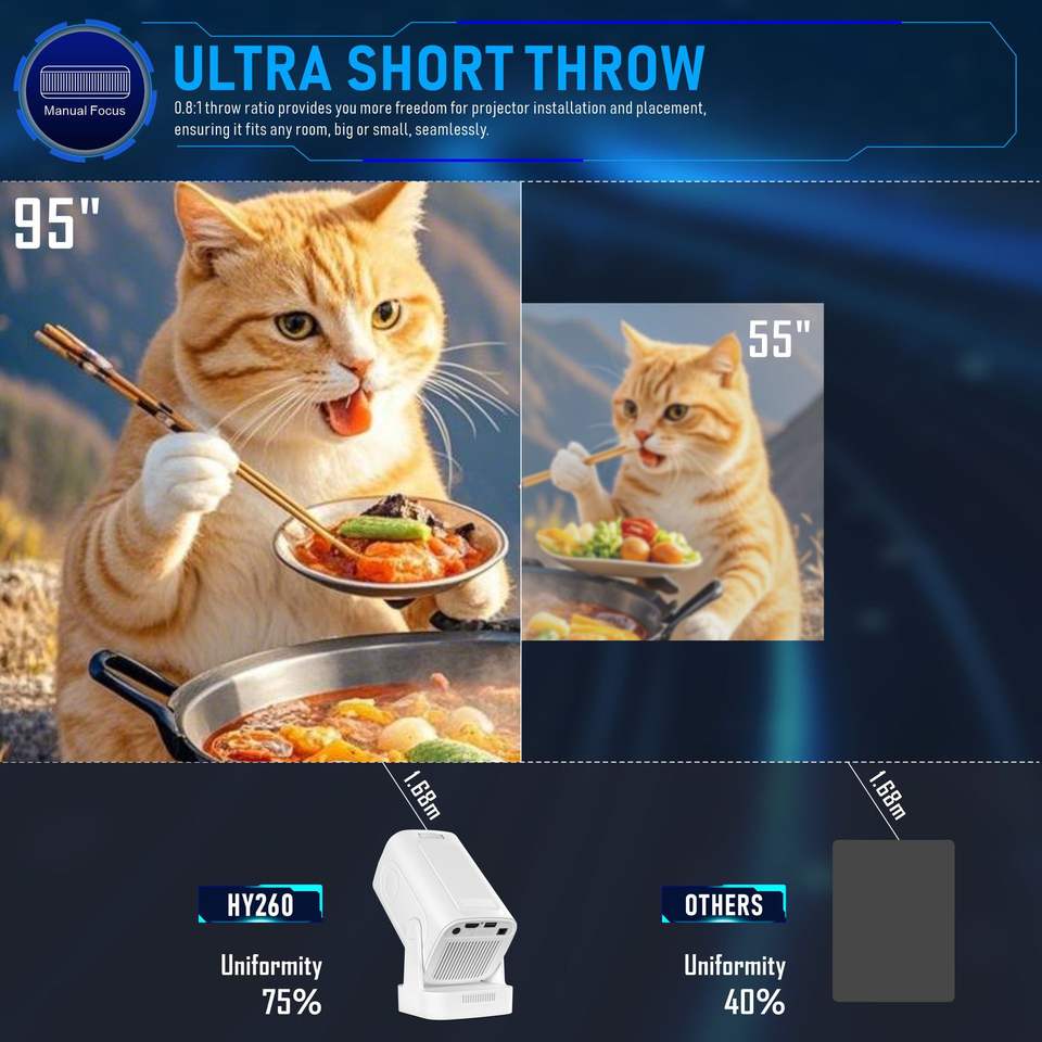 Projector Home Living Room Wall Projection Portable Mini 4K Short Focus Projector