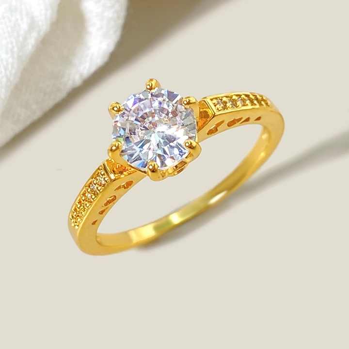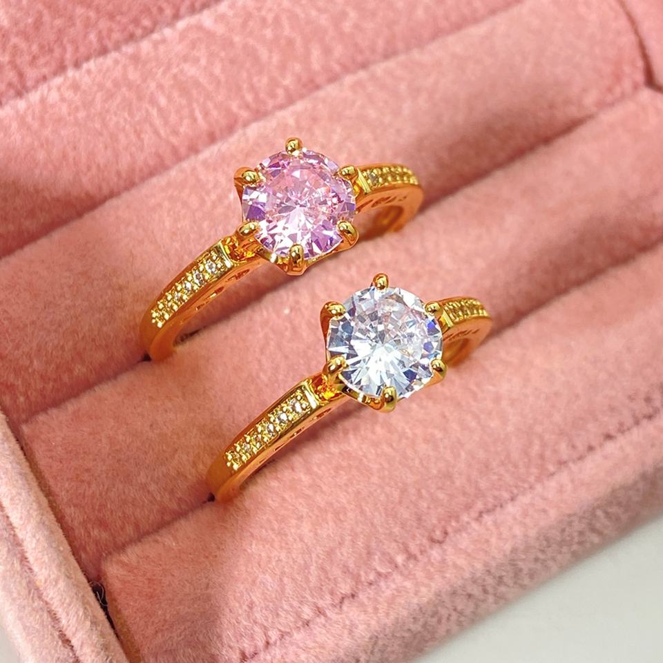 แหวนหมั้น Promise Bridal ชุบทอง 18K ดีไซน์ดั้งเดิมทรงกลม ประดับเพชรซิร์โคเนียสุดหรู สำหรับผู้หญิง