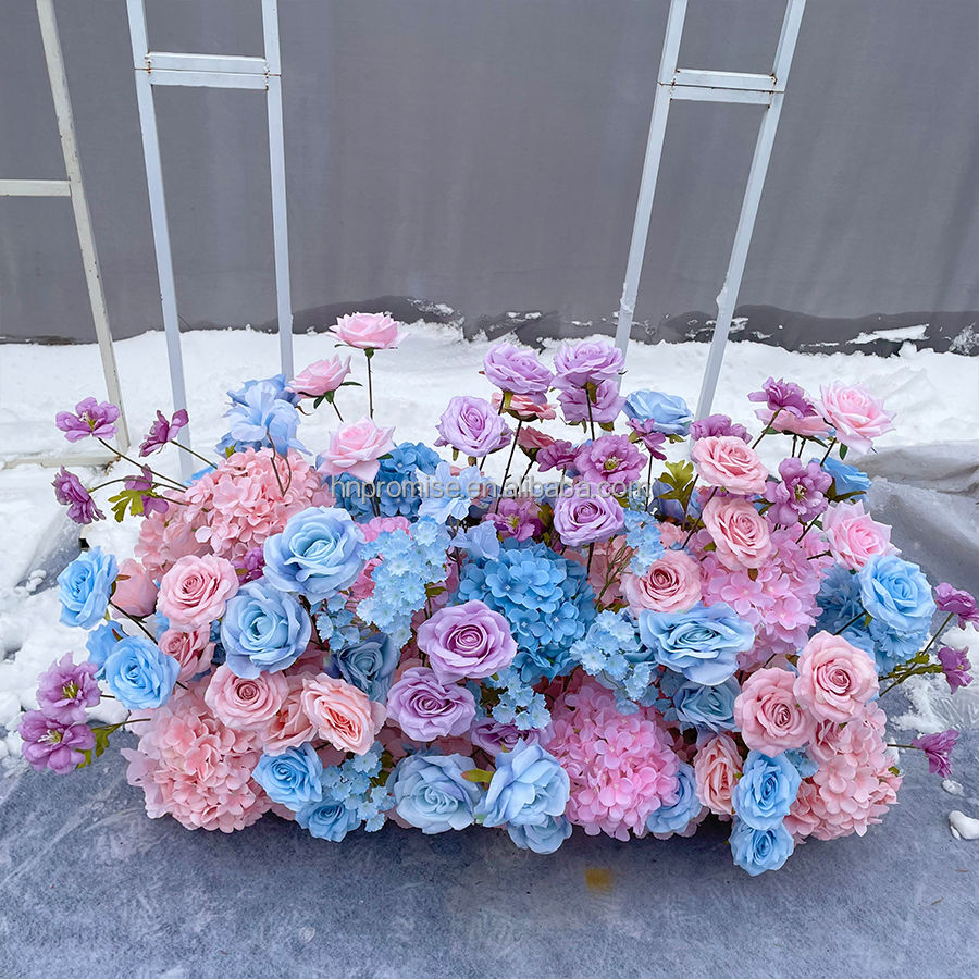 Promise Customizable Size Silk Flower Table Garland Artificial Pink Blue Rose Centerpiece Runner for Mother's Day Christmas