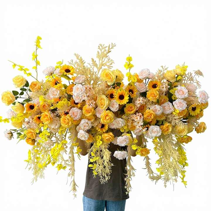 รับสั่งทำพิเศษ ชุดตกแต่งงานแต่งงาน ดอกไม้ประดิษฐ์สีเหลือง พร้อมองค์ประกอบพลาสติก สำหรับวันแม่และวันคริสต์มาส