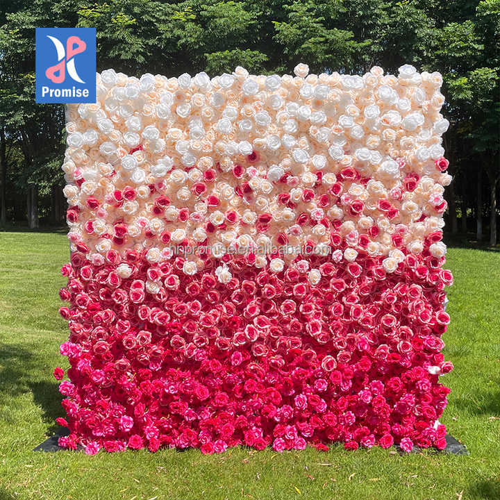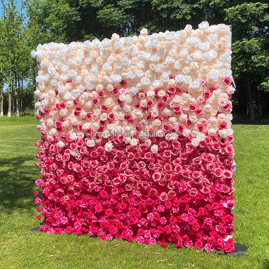ผนังดอกกุหลาบผ้าไหมเทียมสีขาวแดงไล่เฉดแบบม้วน 3 มิติ ขนาด 8x8 ฟุต ปรับแต่งได้ ราคาโรงงาน สำหรับตกแต่งงานแต่งงาน