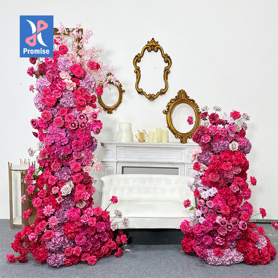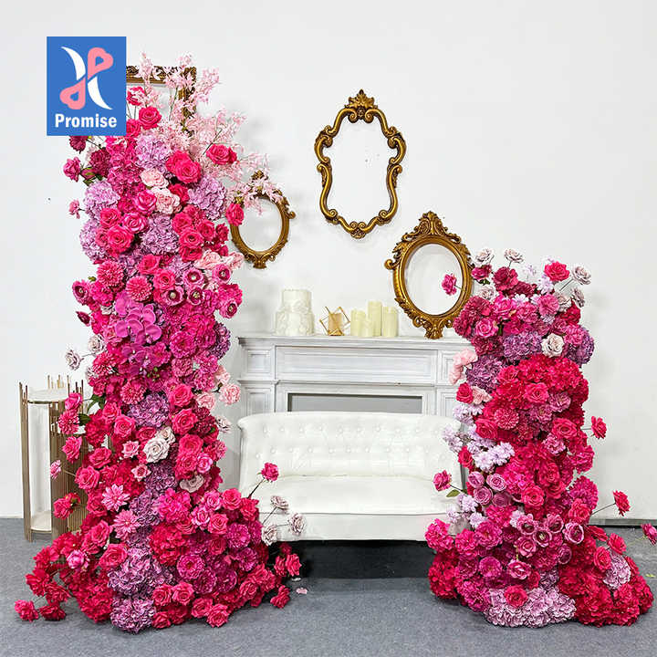 คำสัญญาซุ้มดอกไม้สีชมพูเทียมเทียมสำหรับตกแต่งฉากหลังแต่งงาน