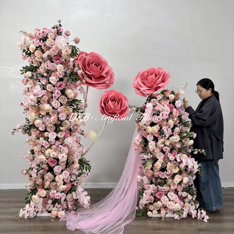 ซุ้มโค้งแต่งงานดอกไม้พื้นหลังขนาดยักษ์ดอกไม้เสาดอกไม้เวทีปาร์ตี้ฉากหลังตกแต่ง