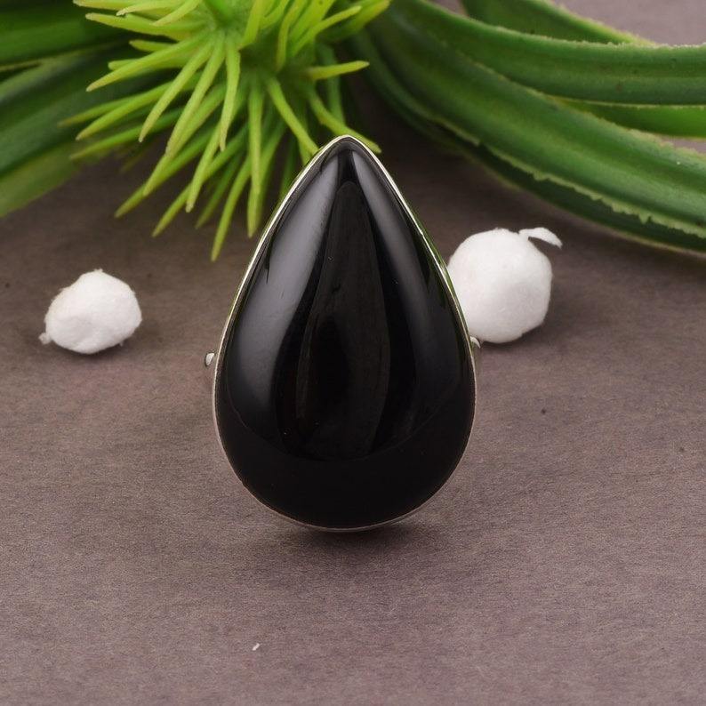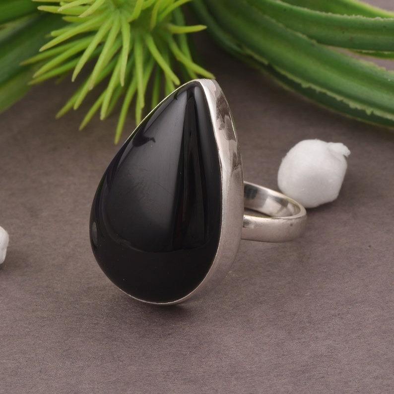 สัญญางวนนิลสีดําธรรมชาติ 925 เงินสเตอร์ลิงอัญมณี Handmade แหวนเครื่องประดับเงินสเตอร์ลิง 925 แสตมป์แหวนเครื่องประดับ