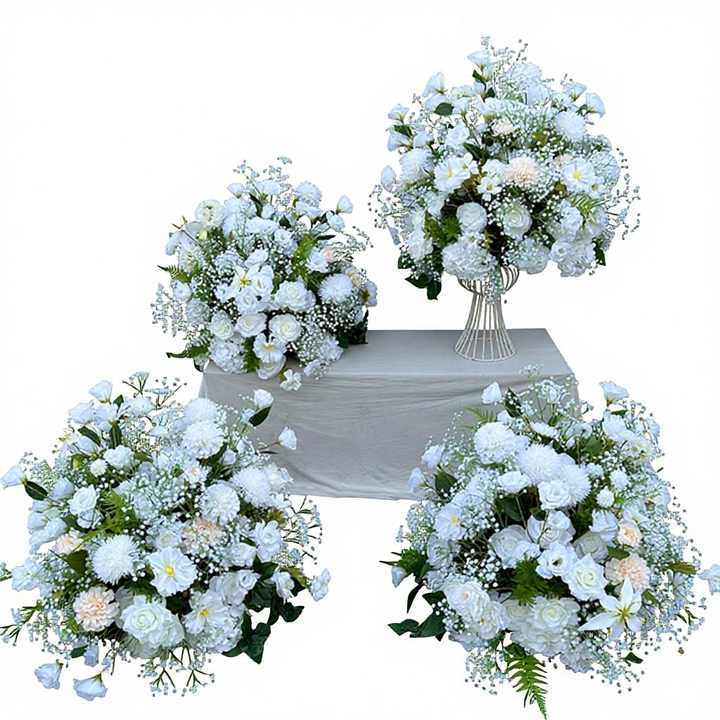 ดอกกุหลาบประดิษฐ์ทรงกลม พร้อมดอกยิปโซฟิลลา สำหรับตกแต่งโต๊ะงานแต่งงาน งานอีเว้นท์ต่างๆ