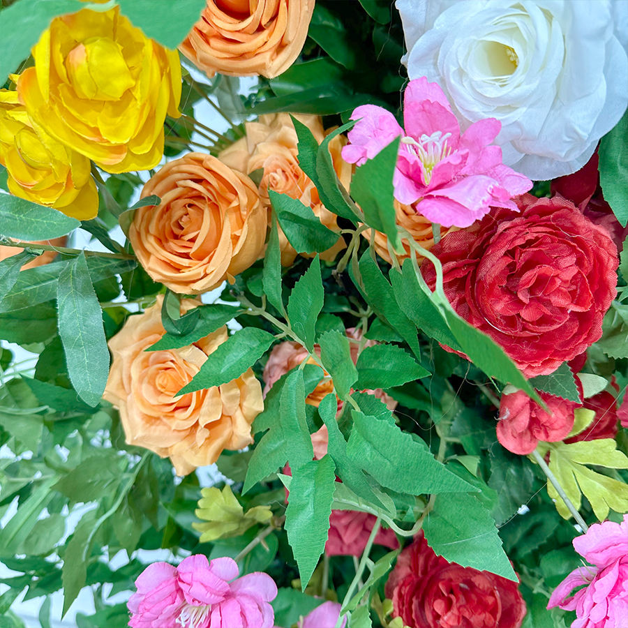 ซุ้มดอกกุหลาบผ้าไหมสีสันสดใสสำหรับงานแต่งงาน ฉากหลังตกแต่งเวทีงานอีเว้นท์ รุ่น PFA-11