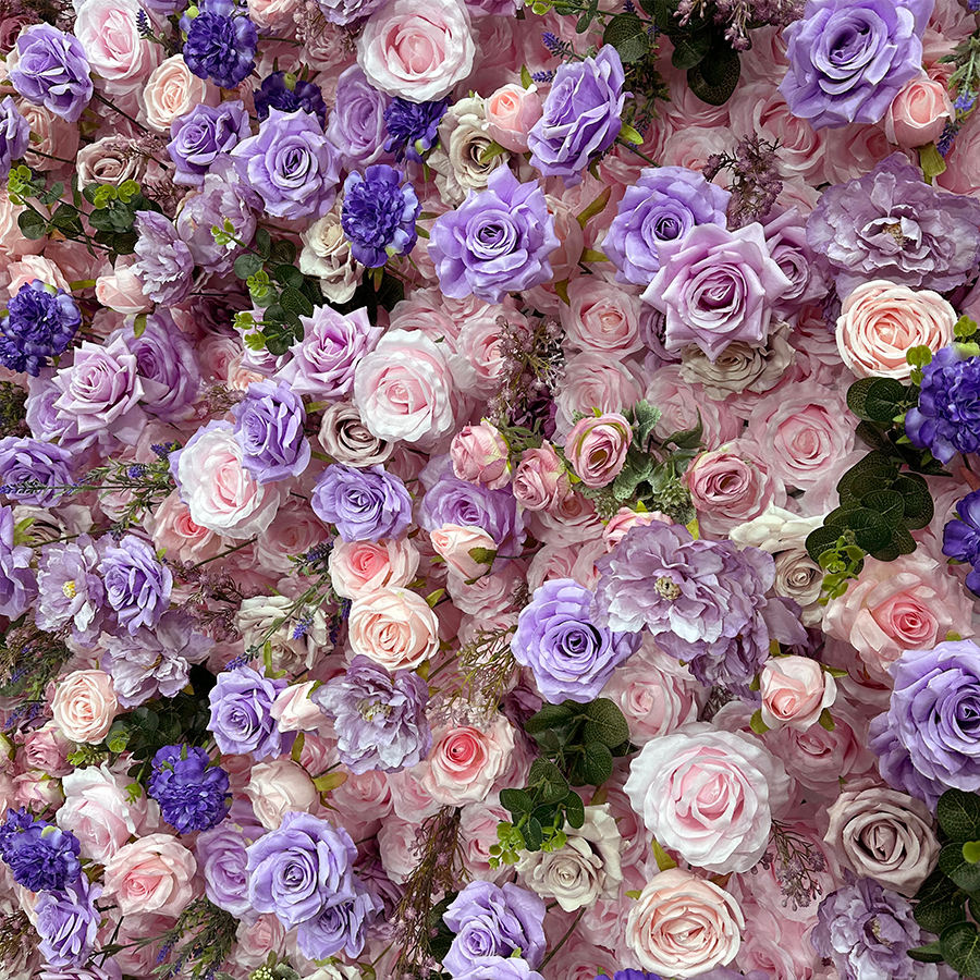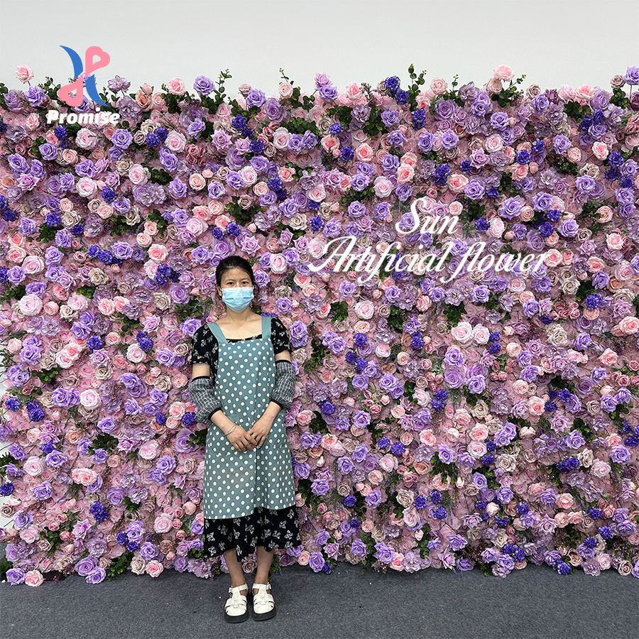 ผนังดอกกุหลาบสีม่วงทำจากผ้าไหมสำหรับงานปาร์ตี้และงานแต่งงาน ฉากหลังประดิษฐ์สำหรับตกแต่งบ้าน