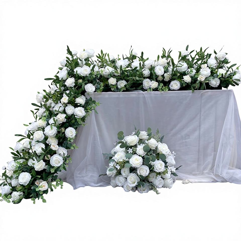 ฉากหลังดอกไม้ผ้าไหมสีขาวสำหรับตกแต่งงานอีสเตอร์ คริสต์มาส และฮาโลวีน ของ Promise Wholesale - ขนาดปรับแต่งได้