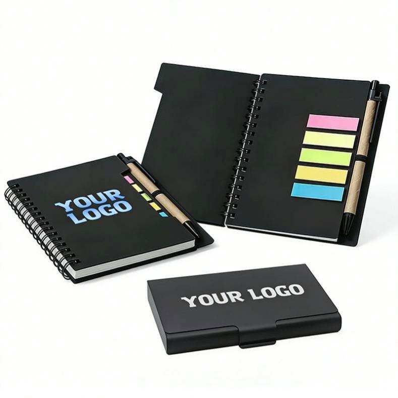 สมุดโน้ตกระดาษคราฟท์พร้อมกระดาษโน้ตแบบมีกาวและปากกา ของขวัญธุรกิจพร้อมโลโก้สั่งทำ ขายส่ง
