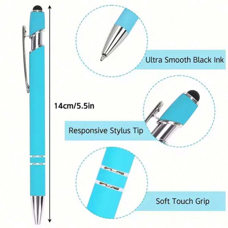 ปากกาลูกลื่นพร้อมหัวปากกาสไตลัสสำหรับหน้าจอสัมผัส โลหะ พลาสติก หมึกสีดำ สลักโลโก้ตามสั่ง ขายส่ง ของขวัญธุรกิจ โปรโมชั่น