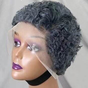 โปรโมชั่นวิกผมทรงแอฟโฟรพิกซี่สั้น ราคา $17 วิกผมหน้าผากลูกไม้ 13x4 ผมแท้ 100% แบบลอนธรรมชาติ วิกผมขายส่ง สีเทาไฮไลท์