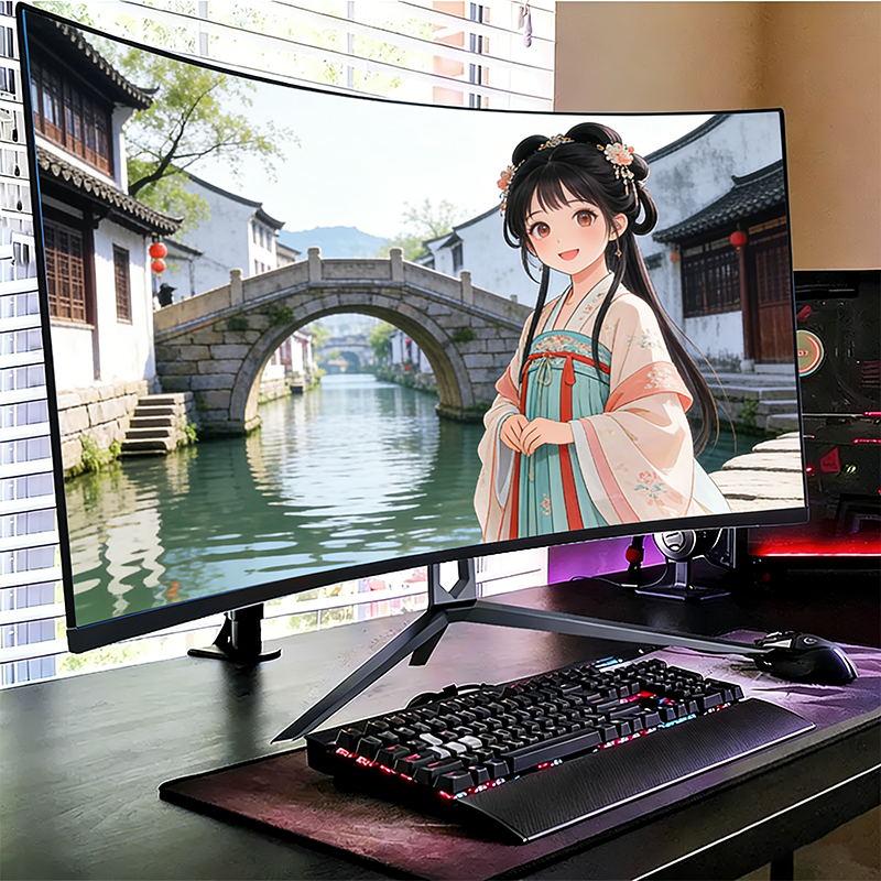 โปรโมชั่นจอ LCD ไร้ขอบขนาด 24/34/49 นิ้ว ความละเอียด 1920*1080 FHD พร้อมขาตั้งแบบติดตั้งถาวร จอเกมมิ่งราคาประหยัด