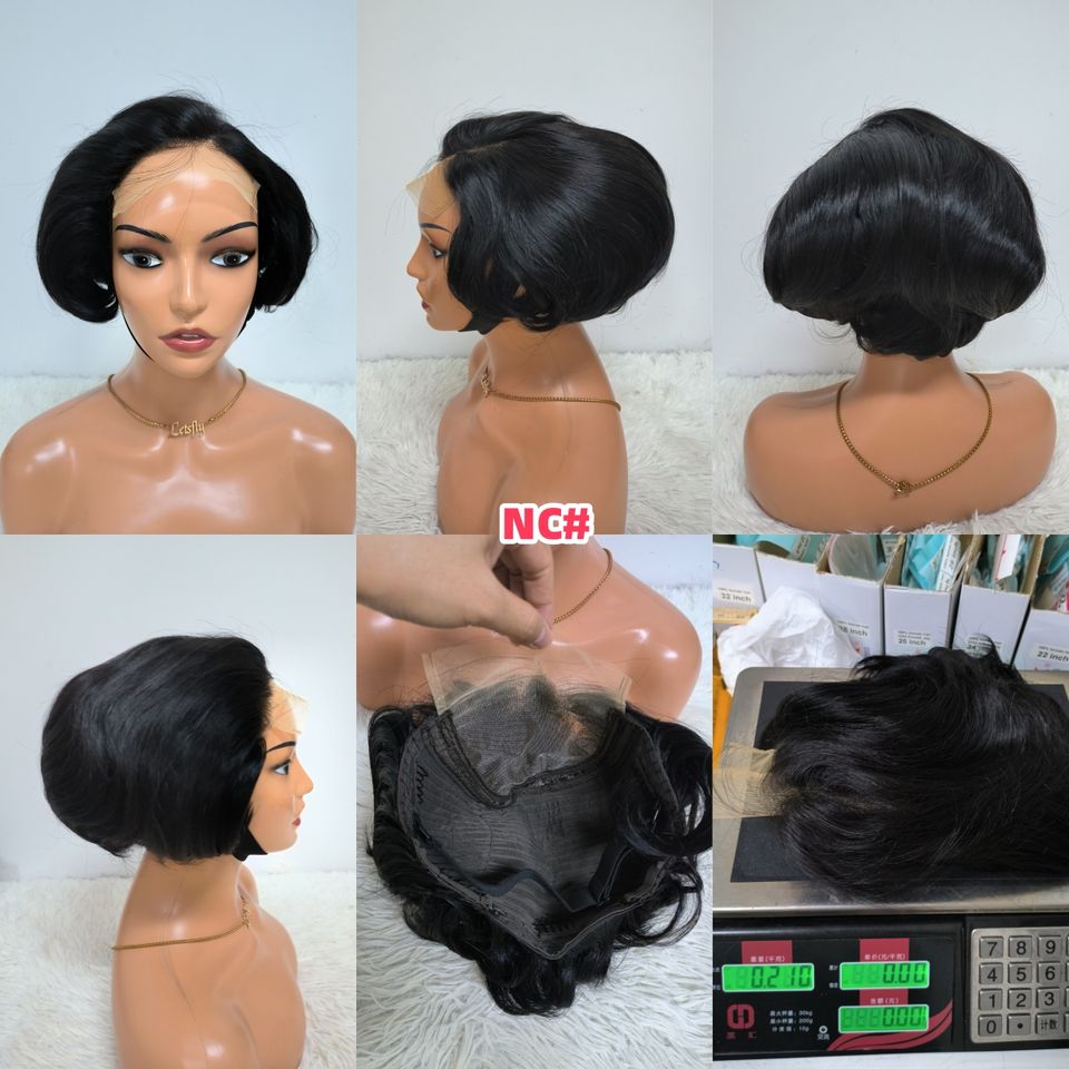โปรโมชั่น $26 วิกผมสั้นแบบ 5x5 น้ำหนัก 200 กรัม ผมแท้ 100% วิกผมบ๊อบตรงทรงพิกซี่ สีเทา NC, สีเทา, สี 4/27 วิกผมหลากสีสำหรับผู้หญิงผิวสี