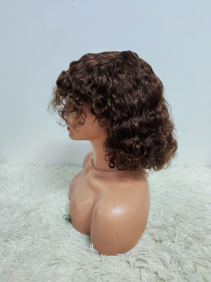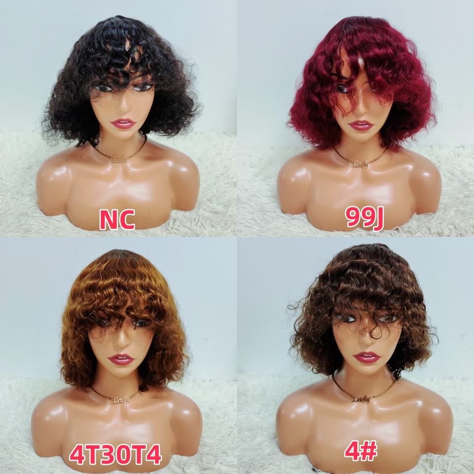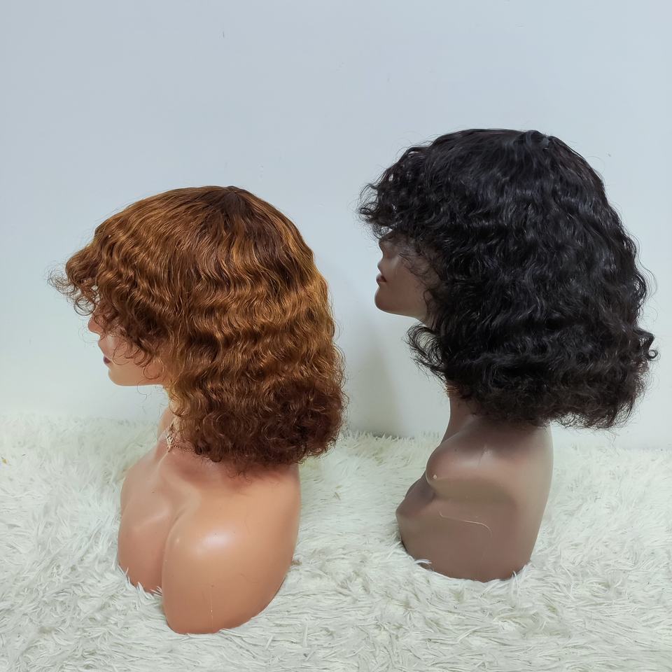 โปรโมชั่น $29 ผมบราซิลแบบบ๊อบมีหน้าม้า วิกผม 200% ไม่มีเชือกผูก แบบลอนน้ำ 12 นิ้ว ผมเวอร์จินแท้จากโรงงาน ขายส่ง ผมหยิกธรรมชาติ