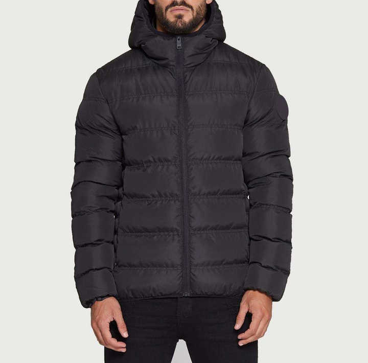 เสื้อแจ็คเก็ตผู้ชายแบบมีฮู้ด รุ่นโปรโมชั่น ดีไซน์ทันสมัย สีสันสดใส ทรงมาตรฐาน สำหรับฤดูหนาว ผ้าพัฟเฟอร์เงา ผ้าแคนวาส คอตั้ง ปักโลโก้ด้านหน้า