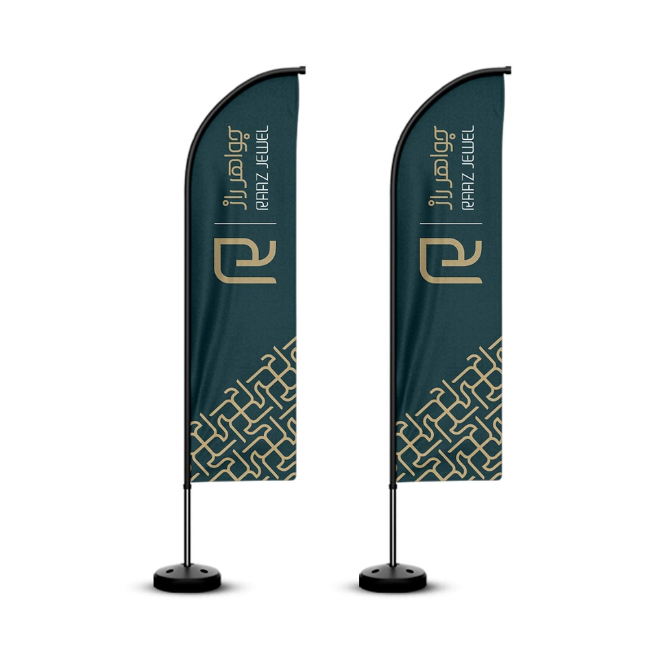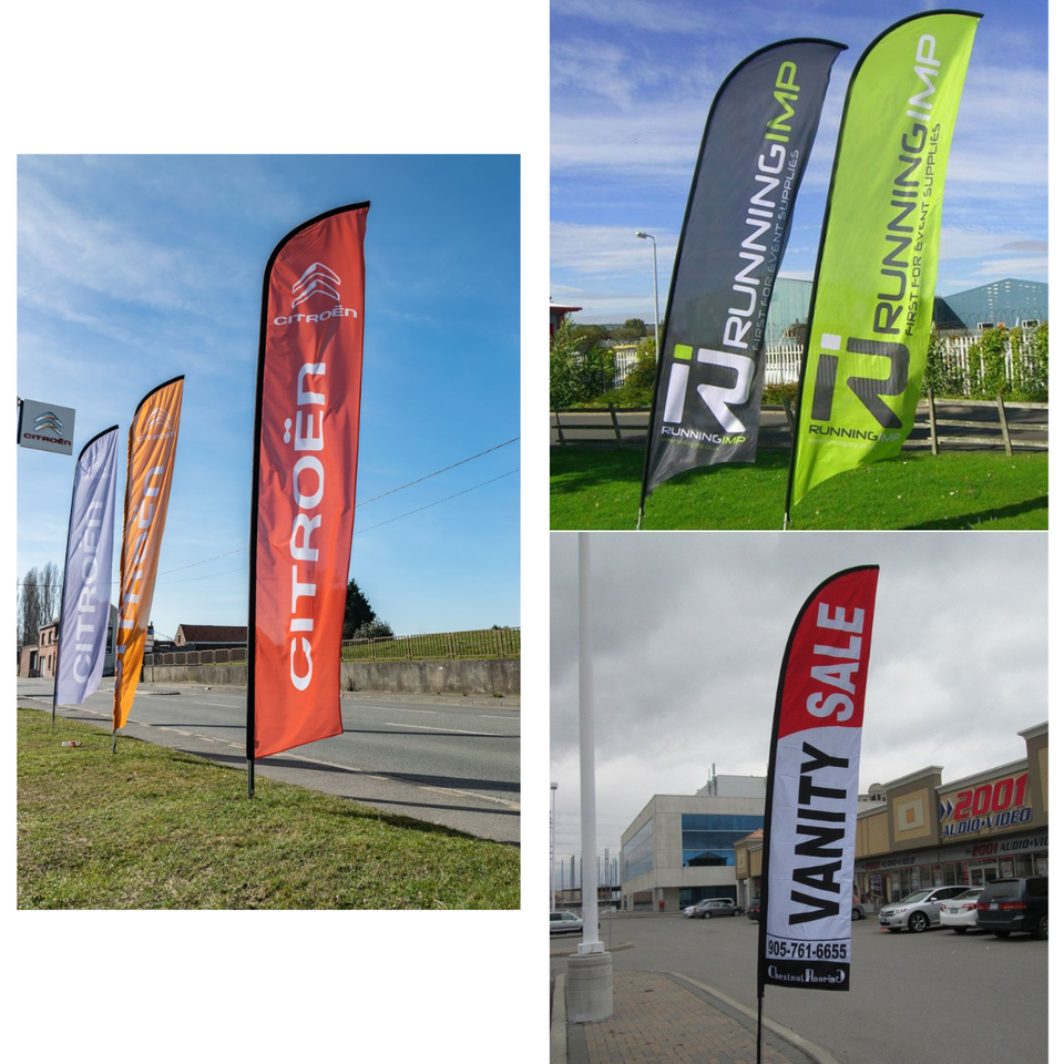 ธงขนนกพิมพ์สีเต็มรูปแบบสำหรับงานแสดงสินค้า งานอีเว้นท์ หรือชายหาด พร้อมฐานเสียบ ผลิตโดยโรงงานพิมพ์ในเวียดนาม