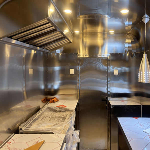 รถพ่วงสแตนเลสสำหรับขายอาหารรถเข็นขายกาแฟตู้ขายไอศกรีมเคลื่อนที่ได้อุปกรณ์ครบครัน