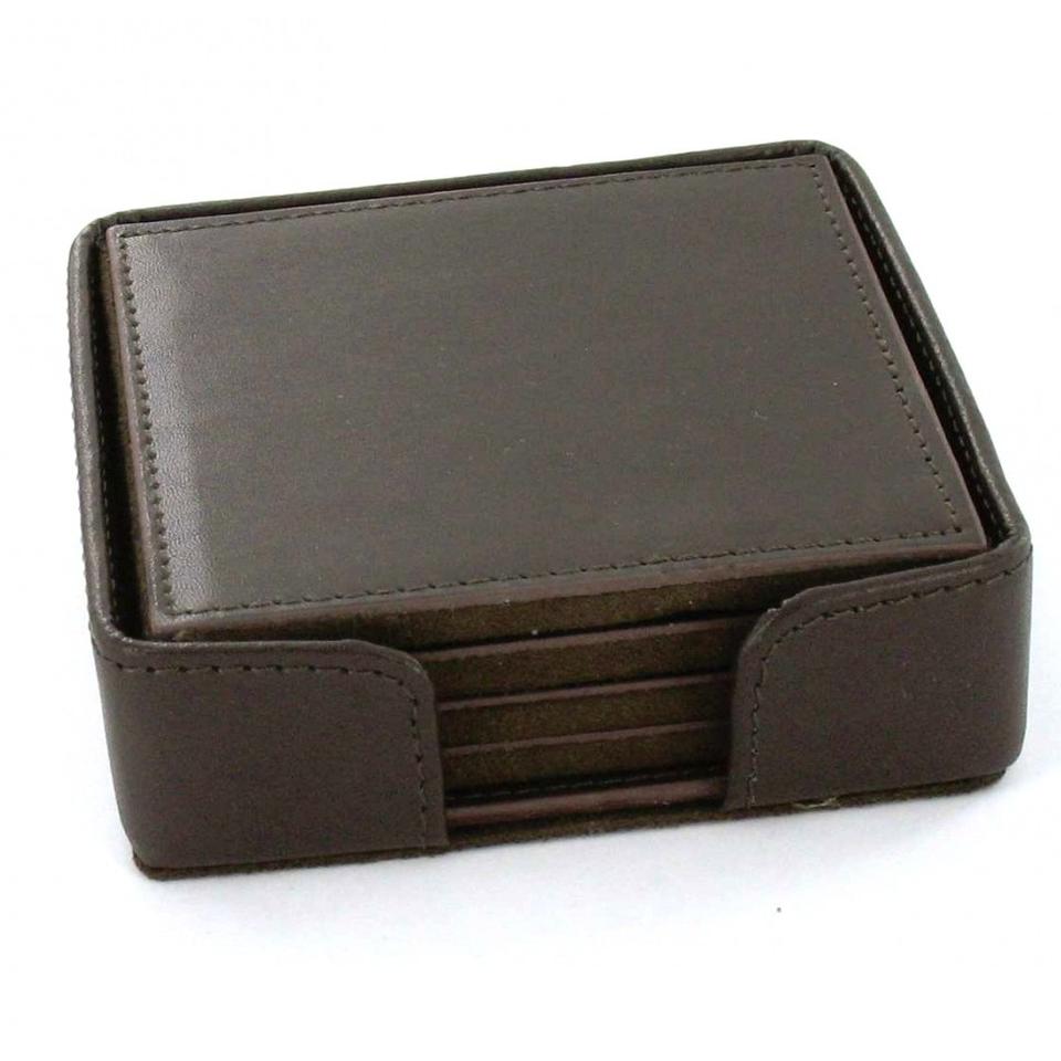 ชุดที่รองแก้วของขวัญโปรโมชั่นการออกแบบพิเศษสีน้ำตาลหนังแท้4ชิ้น