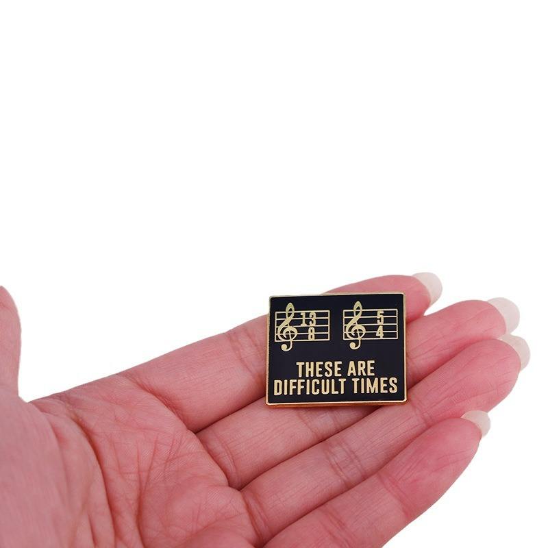 เข็มกลัดโน้ตดนตรีสี่เหลี่ยมชุบทองมีคำที่เป็นบวกหรูหราสลักเป็นแผ่นป้ายเคลือบ