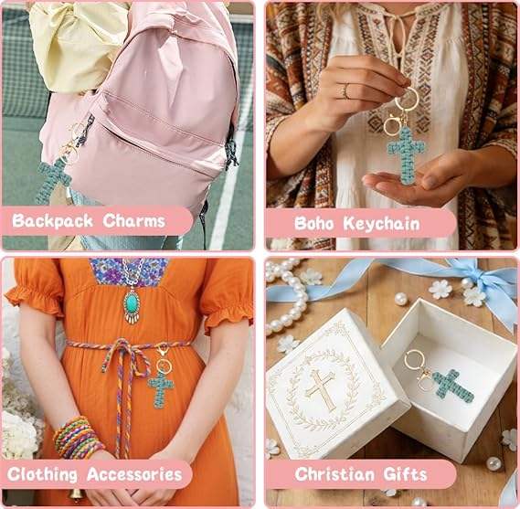 พวงกุญแจคริสเตียนแบบถักมือ สไตล์โบฮีเมียน ย้อนยุค เรียบง่าย สำหรับกระเป๋า รถยนต์ ของขวัญสุดสร้างสรรค์