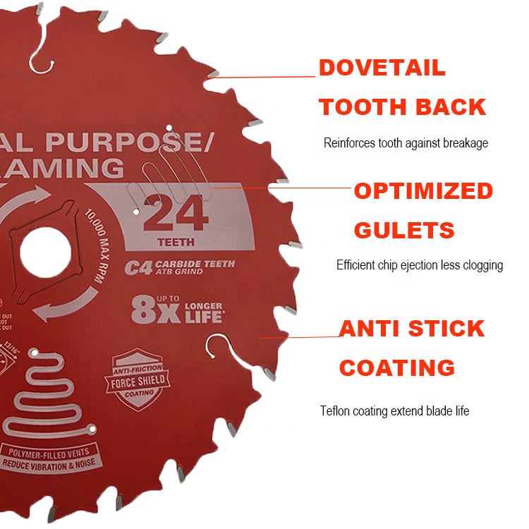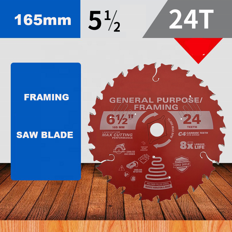ใบเลื่อยวงเดือนสำหรับงานรื้อถอนและโครงสร้าง ขนาด 24 ฟัน 165 มม. พร้อมเคลือบสารกันติด สำหรับงานไม้