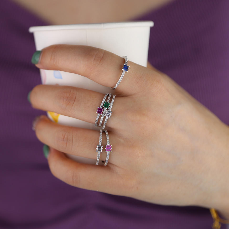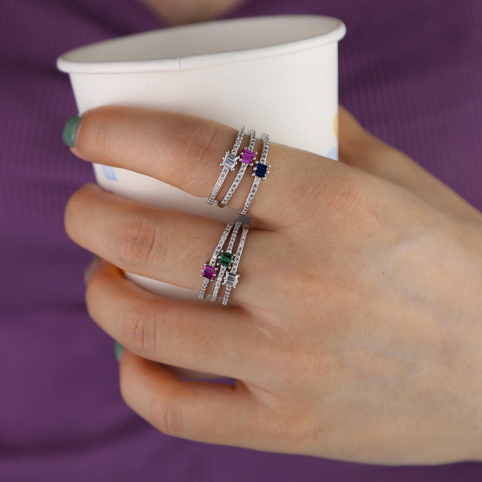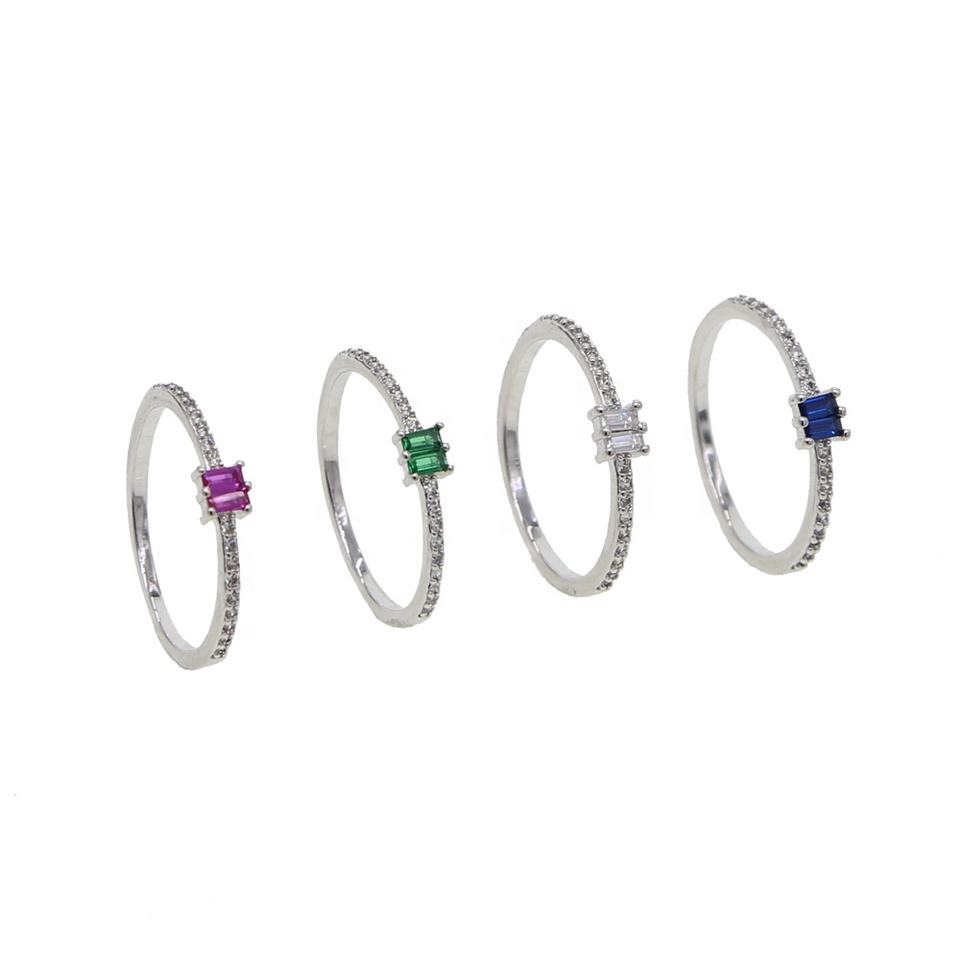 โปรโมชั่นบางวง4สีสี่เหลี่ยม Cz ละเอียดอ่อนแต่งงานหมั้นวงแหวนแฟชั่นสำหรับผู้หญิงเครื่องประดับ