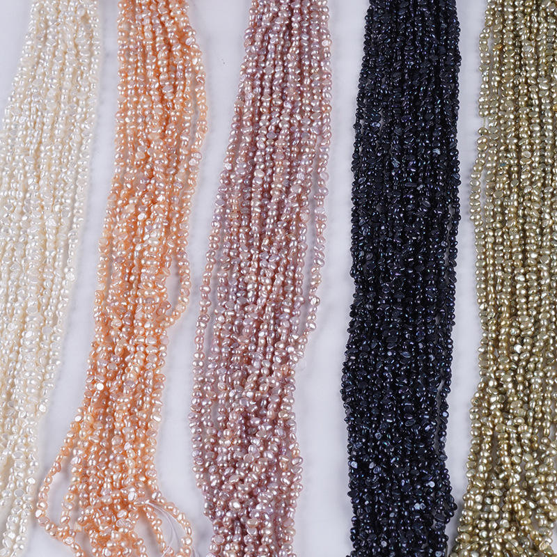 โปรโมชั่นขายส่งไข่มุกน้ำจืดธรรมชาติขนาด 3-4 มม. รูข้าง สองด้าน สีอ่อน สำหรับทำเครื่องประดับ DIY ไข่มุกเม็ดหลวม