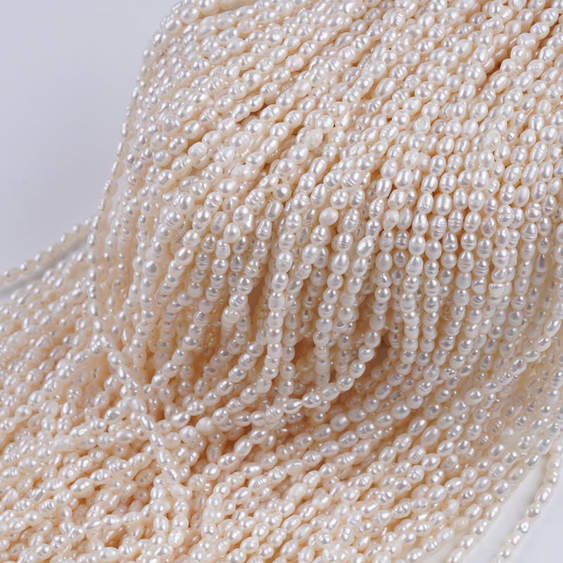 โปรโมชั่นไข่มุกน้ำจืดธรรมชาติจูจี้ ขนาด 3-4 มม. รูปทรงข้าวสาร สีขาว สำหรับทำสร้อยคอและกำไลข้อมือ ไข่มุกข้าวสารหลากสี