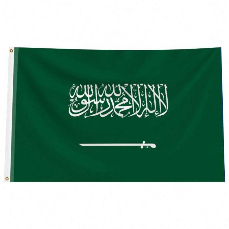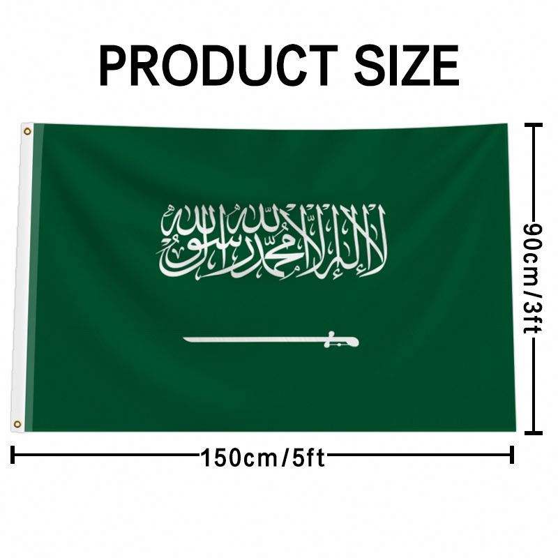 โปรโมชั่นธงชาติแบบกำหนดเองขนาด 3x5 ฟุต ของทุกประเทศ ทรงธงสามเหลี่ยม ผ้าโพลีเอสเตอร์กันยับ พร้อมโลโก้แบบกำหนดเองสำหรับซาอุดีอาระเบีย