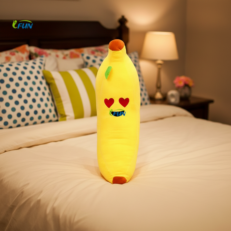 บอลลูนกล้วยพองลมไฟฟ้าพิมพ์ลายซิลค์สกรีนสีเหลืองขนาด 1.2 เมตร รุ่นโปรโมชั่น รูปหัวใจยิ้ม