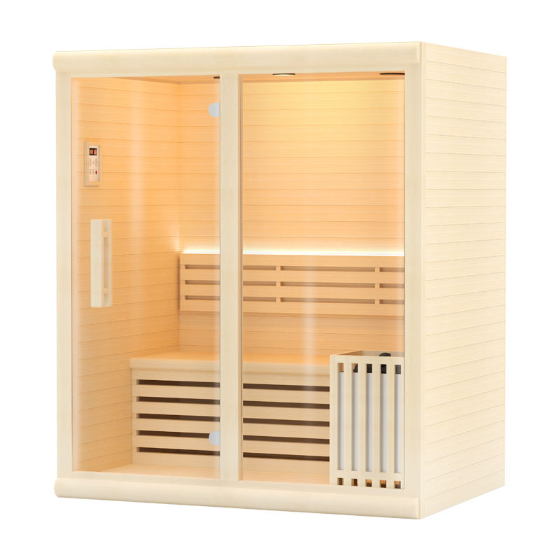 ห้องซาวน่าอบไอน้ำแบบแห้ง3คนสำหรับใช้ในบ้านเตาไฟฟ้าไม้เนื้อแข็งไม้เฮมล็อคสำหรับใช้ในอพาร์ตเมนต์มีแผงควบคุม