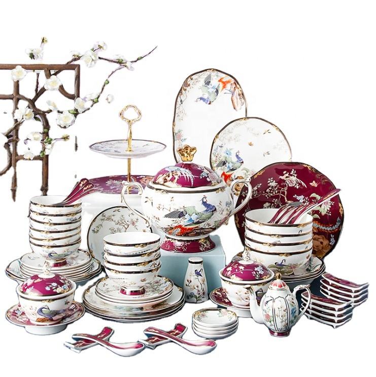 ชื่อสินค้า:ชุดอาหารกระดูกจีน Lucky Bird 68 ชิ้น
