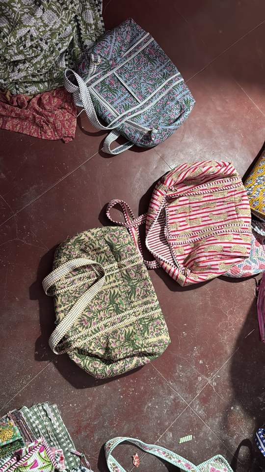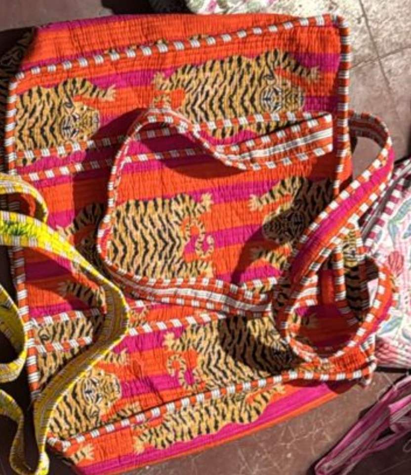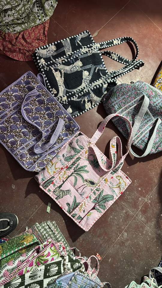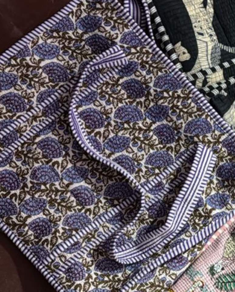 กระเป๋าผ้าฝ้ายทำมือพิมพ์ลายสกรีนแบบควิลท์สไตล์คันธาสีพาสเทลอ่อน ดีไซน์ลวดลายแบบนามธรรมเพื่อการส่งเสริมการขาย พิมพ์ลายศิลปะพื้นเมืองแบบสองด้าน สะพายไหล่ได้