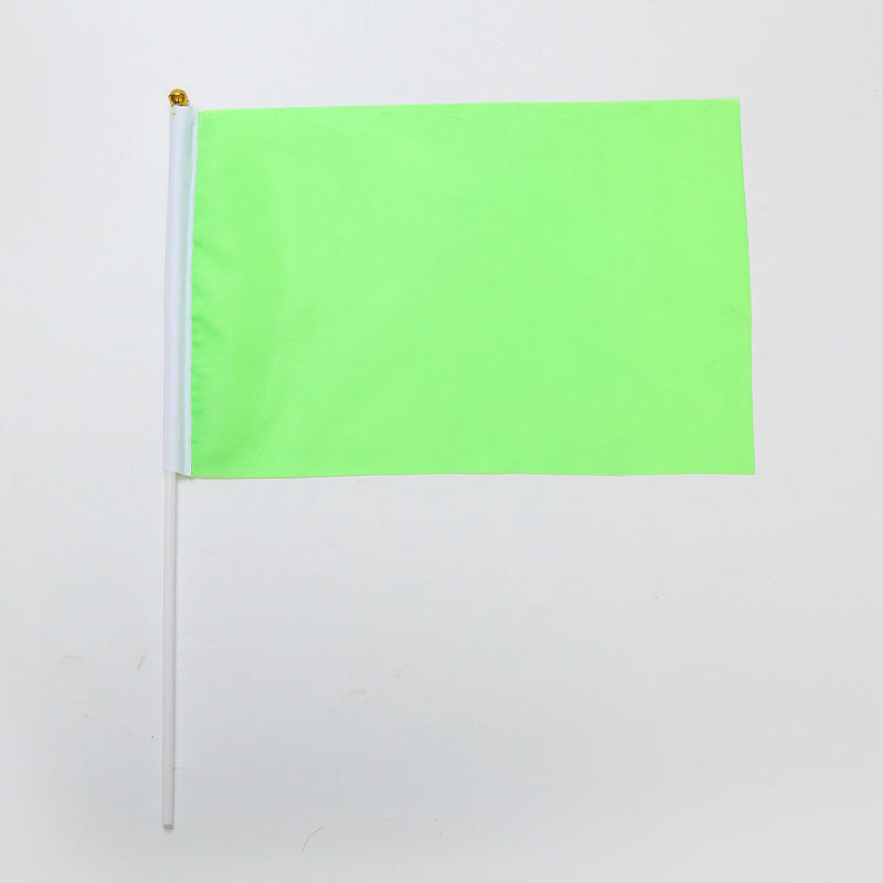 ธงประดับแบบถือขนาดเล็กทำจากโพลีเอสเตอร์ใช้มือจับมีเสาพลาสติกสำหรับกิจกรรมส่งเสริมการขายโลโก้ออกแบบได้ตามต้องการ