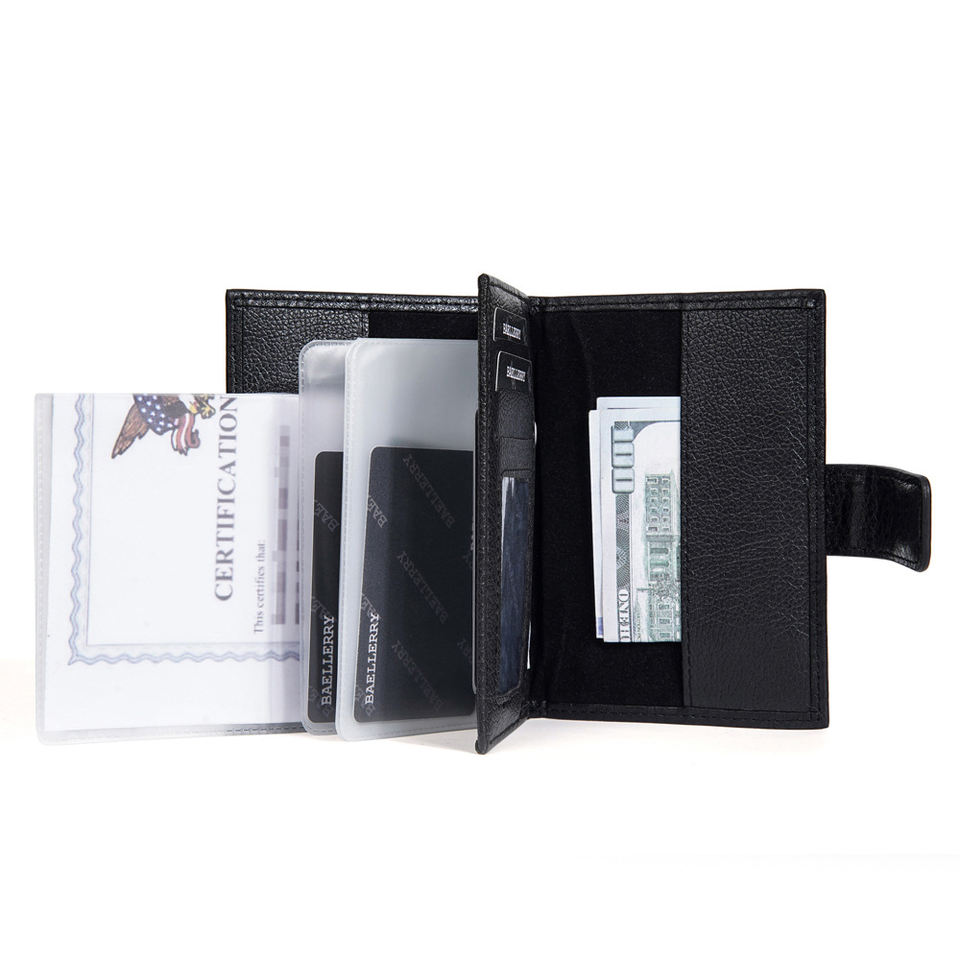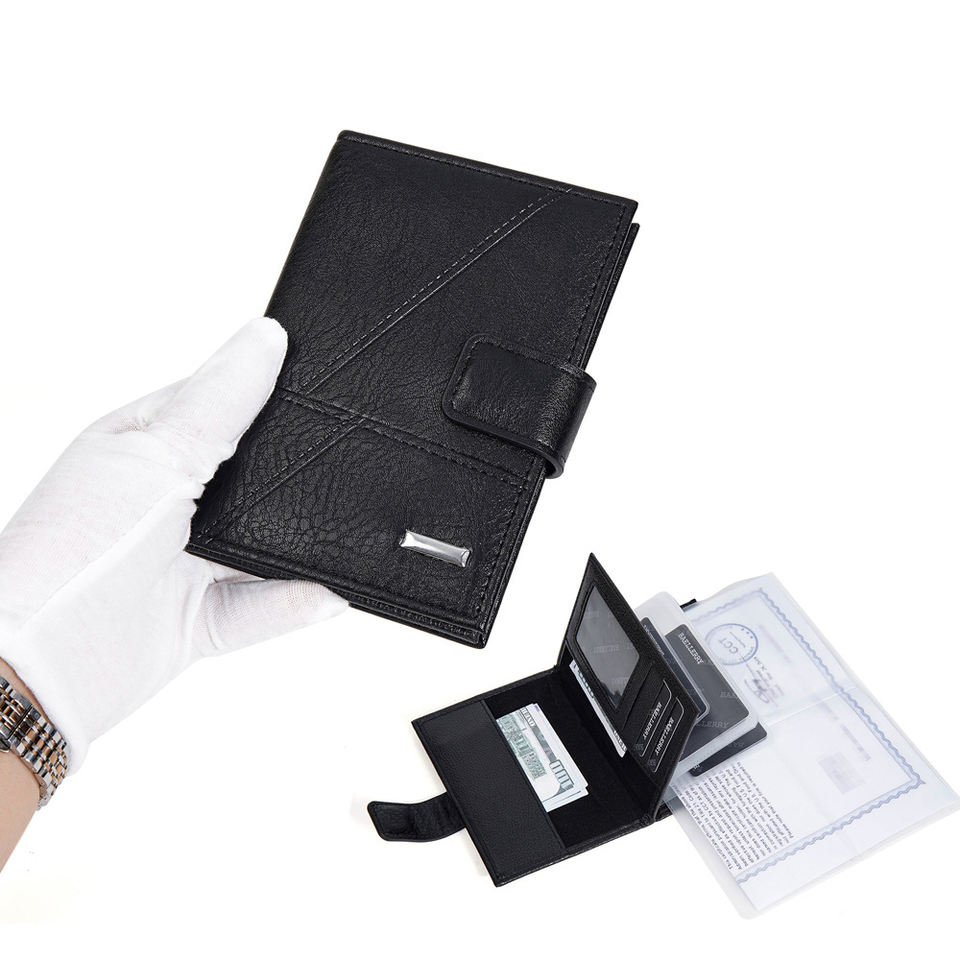 กระเป๋าสตางค์หนัง PU ป้องกัน RFID พร้อมช่องใส่บัตรแบบดีดออกอัตโนมัติสำหรับผู้ชาย | กลไกการกดด้านข้างแบบใช้ซ้ำได้ป้องกันการโจรกรรมแบบสแน็ป