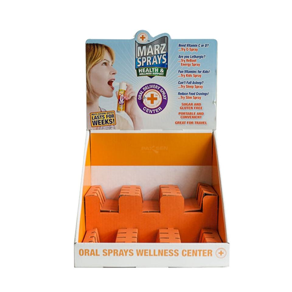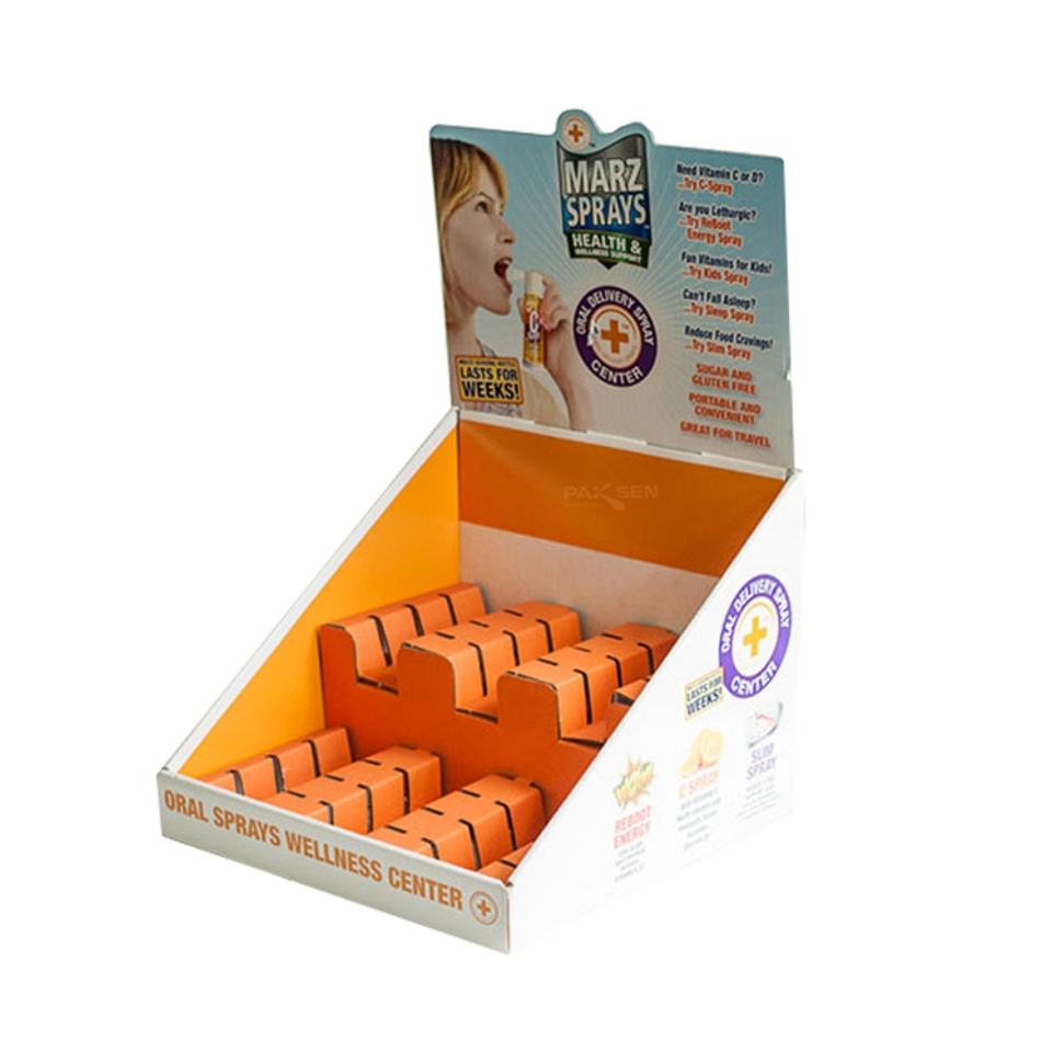 ชั้นวางสินค้ากระดาษแข็งสำหรับโปรโมชั่น ชั้นวางสินค้ากระดาษแข็งรีไซเคิลได้ ชั้นวางสินค้ากระดาษแข็งแบบหลายชั้นสำหรับวางบนเคาน์เตอร์