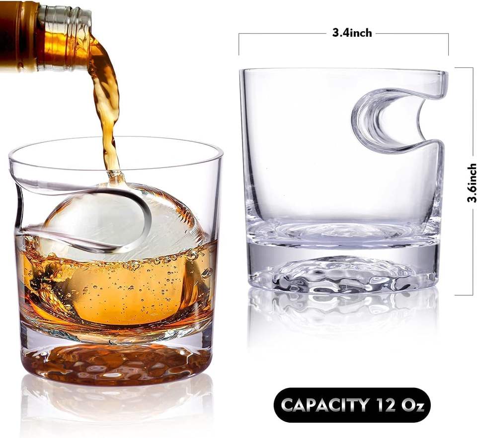 แก้วน้ำทรงเตี้ยแบบใส ดีไซน์พิเศษ ราคาประหยัด สำหรับใส่เหล้าบรั่นดี วิสกี้ ซิการ์ พร้อมฐานรูปทรงลูกบอลน้ำแข็ง