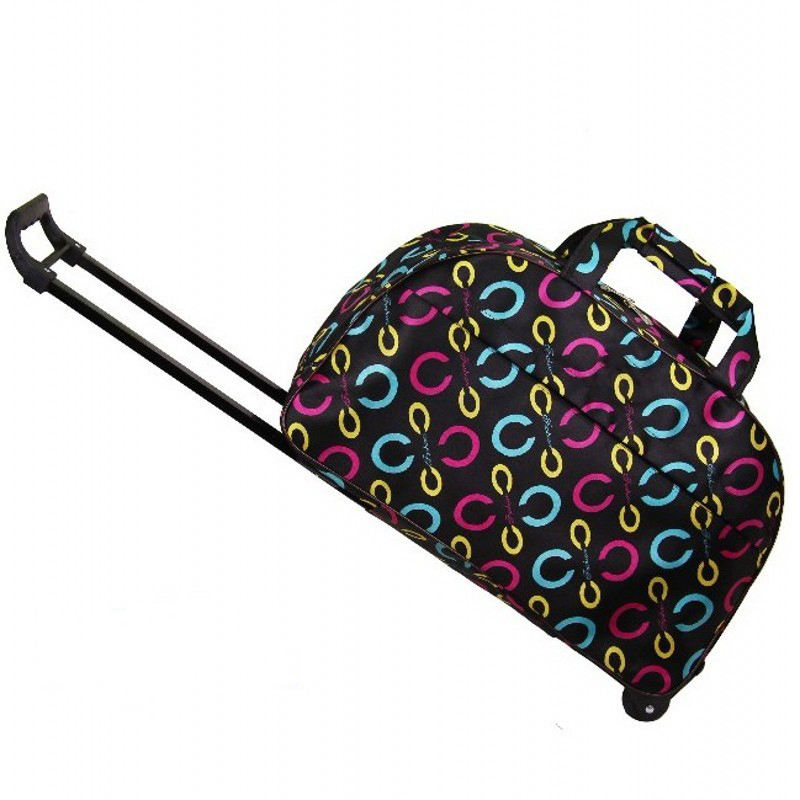 โปรโมชั่นราคาถูกโพลีเอสเตอร์ที่มีสีสันเดินทางกระเป๋า Duffel กับล้อรถเข็น