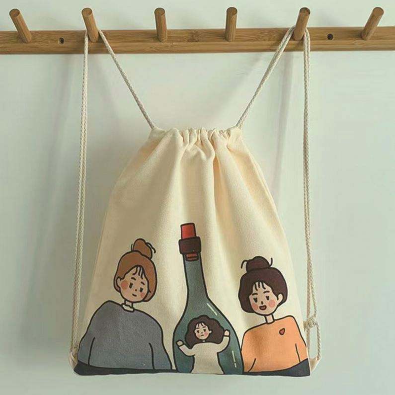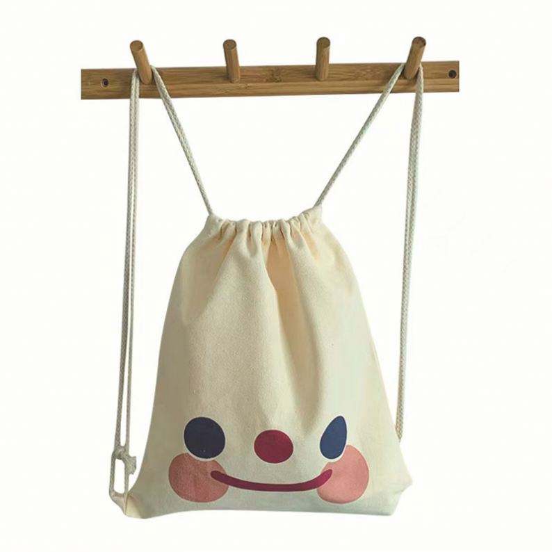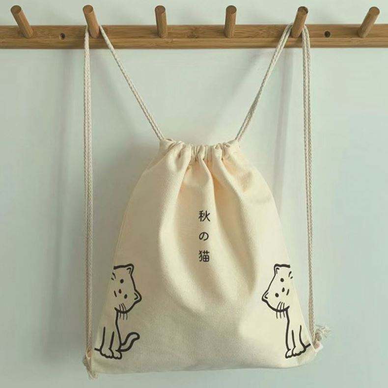 กระเป๋าเป้สะพายหลังผ้าแคนวาสแบบมีเชือกผูก กระเป๋าผ้าฝ้ายออร์แกนิคไนลอน กระเป๋าเป้สะพายหลังผ้าแคนวาสแบบมีเชือกผูก