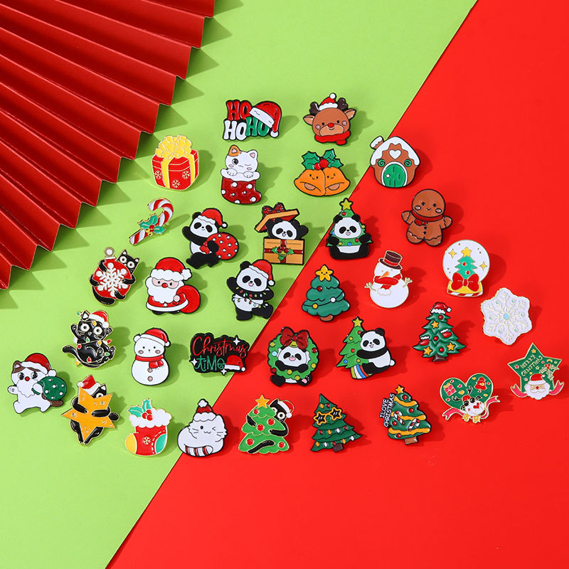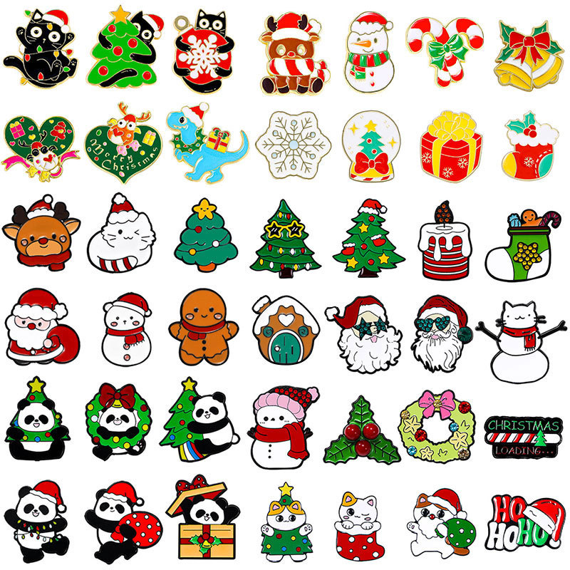 เข็มกลัดซานต้าเคลือบอ่อนสำหรับปกเสื้อทำจากนิกเกิลสีดำสำหรับวันฮาโลวีนปีใหม่ตามสั่ง