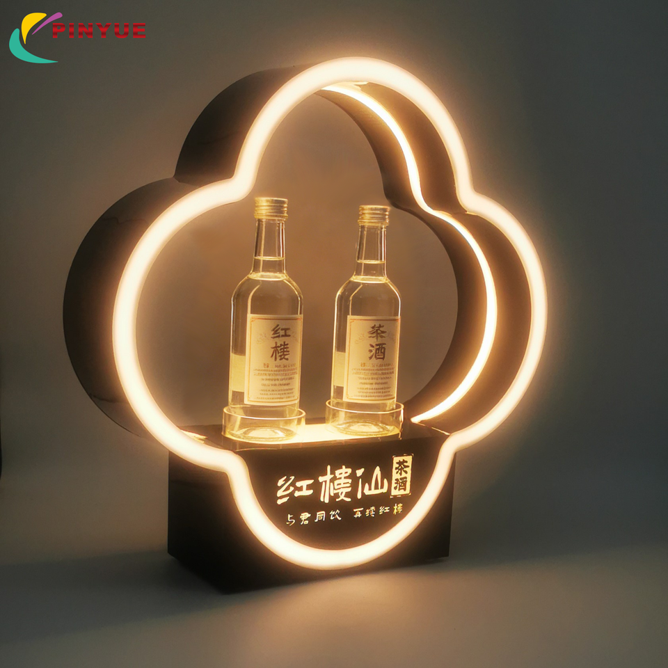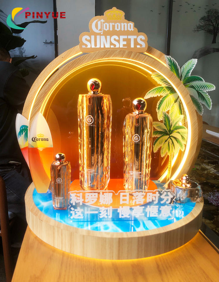 ชั้นวางอะคริลิคแบบมีไฟ LED สำหรับโฆษณาสินค้าบำรุงผิวและเครื่องสำอาง รูปทรงตัว L พร้อมโลโก้สั่งทำพิเศษ