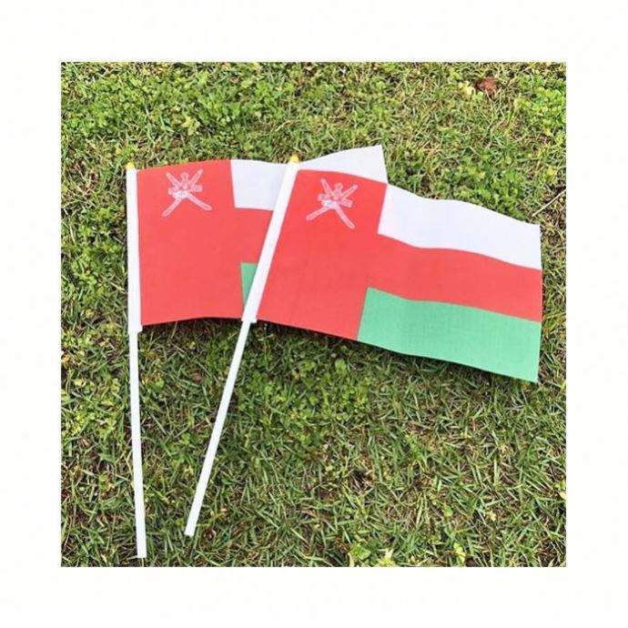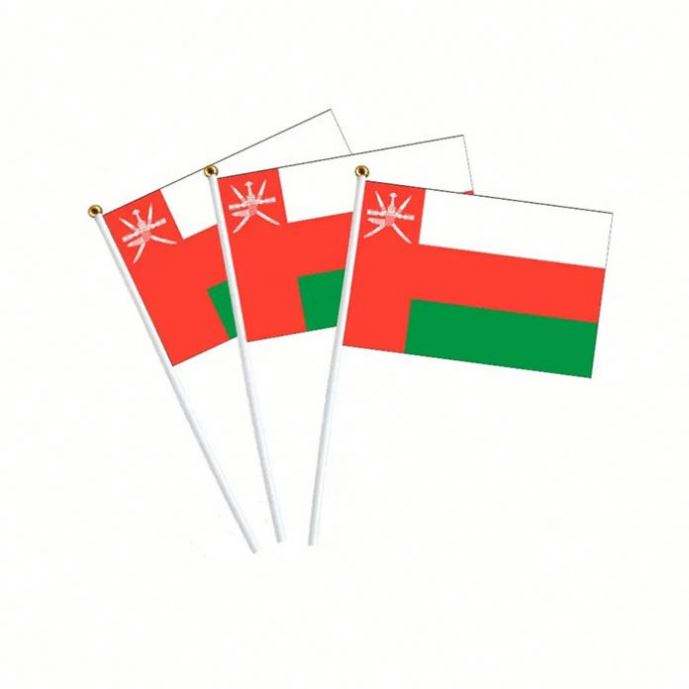 ธงชาติโอมานขนาดเล็กแบบพกพา ทำจากผ้าโพลีเอสเตอร์สั่งทำพิเศษ พร้อมด้ามจับพลาสติกหรือไม้