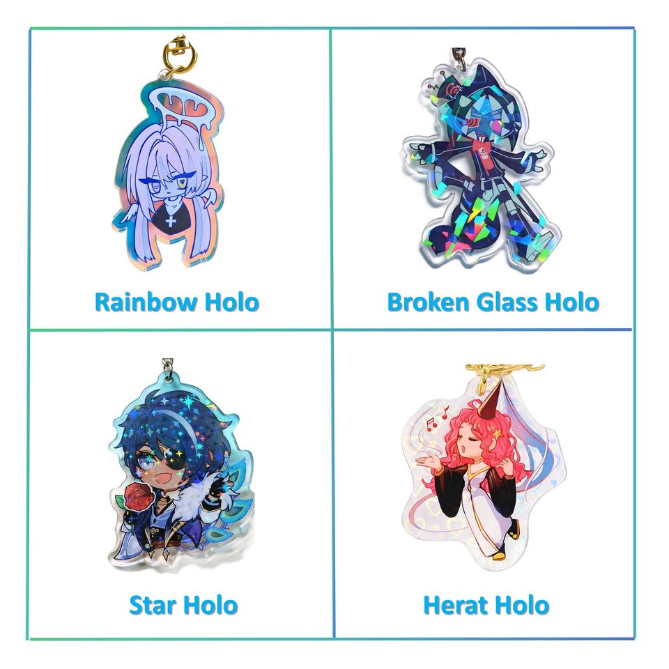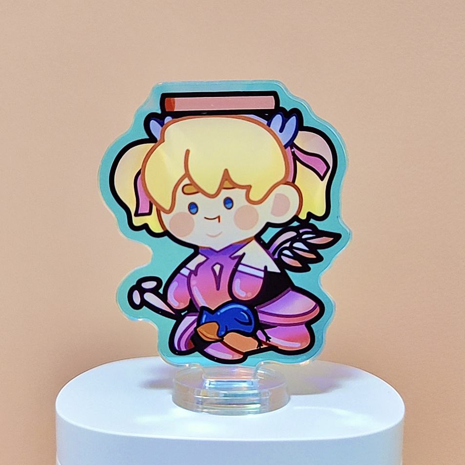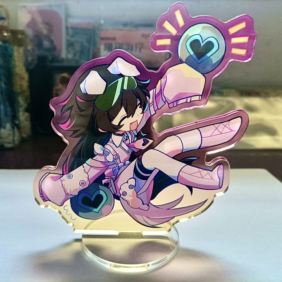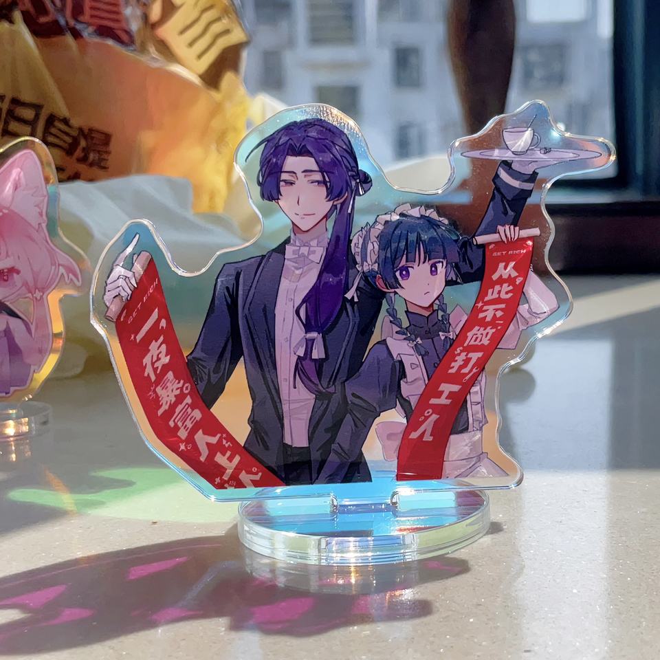 ขาตั้งอะคริลิคใสพิมพ์ลายการ์ตูนอนิเมะน่ารักแบบสองด้าน สีรุ้งโฮโลแกรม สำหรับโปรโมชั่น