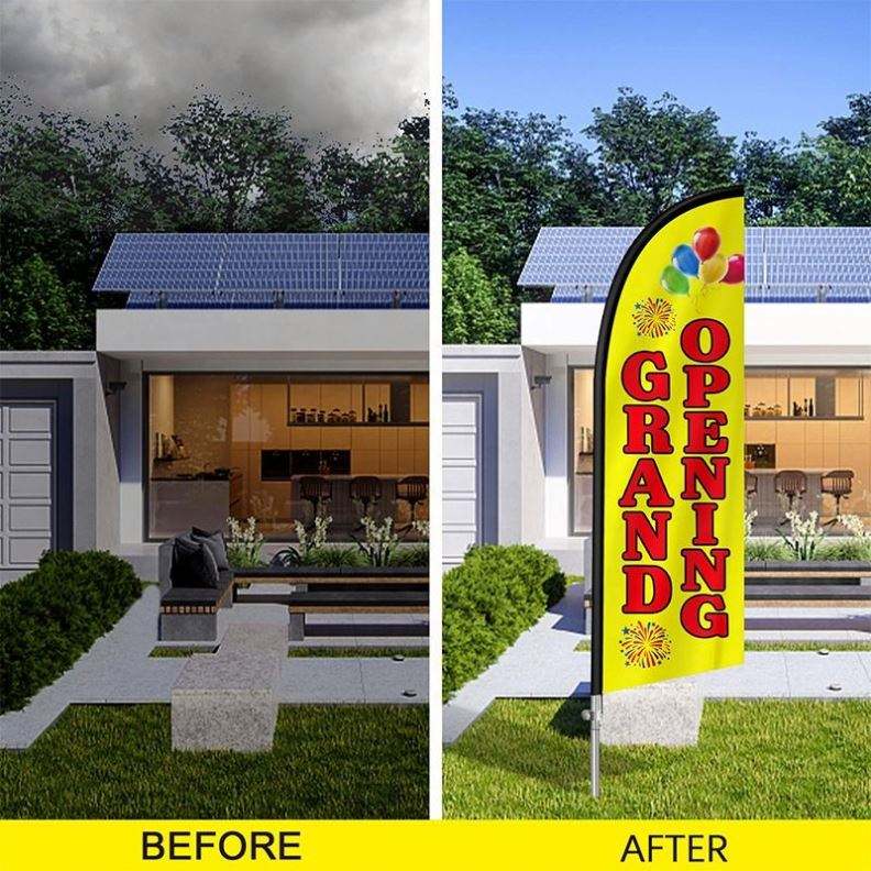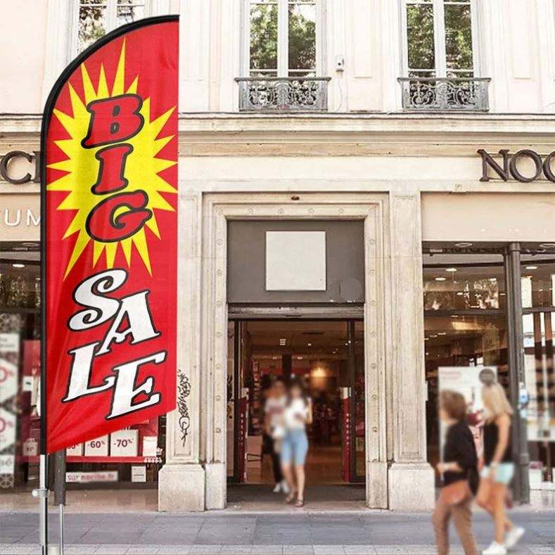Promotional Custom Printed Knitted Polyester Feather Flag for Outdoor Advertising for Smoke Shops Barbers or Beach Flags