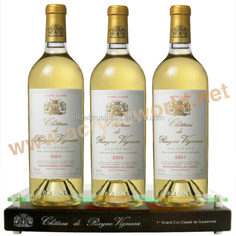 โปรโมชั่นปรับแต่งไฟ LED อะคริลิเหล้าชั้นวางไวน์แสดงเคาน์เตอร์