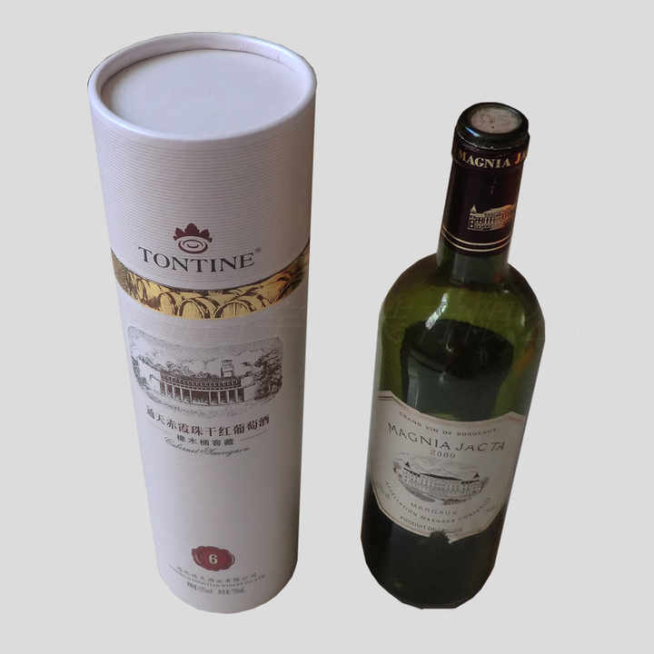 ขวดน้ำไวน์ทรงกระบอกกล่องกระดาษของขวัญกระดาษแข็งภาชนะบรรจุกระดาษคราฟท์เหล้าวิสกี้หลอดบรรจุภัณฑ์ทรงกลม