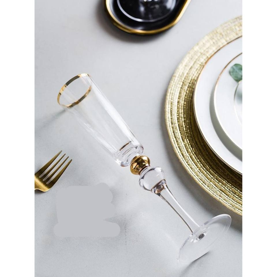 โรงงานส่งเสริมการขาย! แก้วแชมเปญก้านยาวขอบทองทำจากแก้วเป่ามือสวยงาม